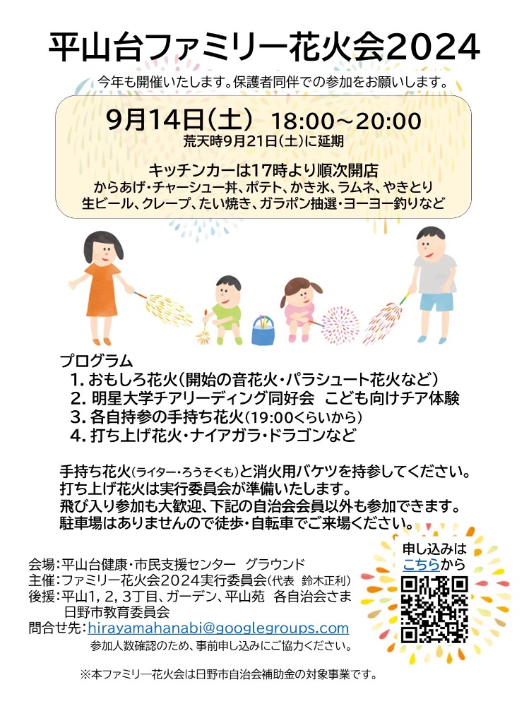ひらやま焚火会のメンバーが中心となって『平山台ファミリー花火会実行委員会』を結成し、